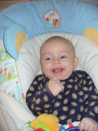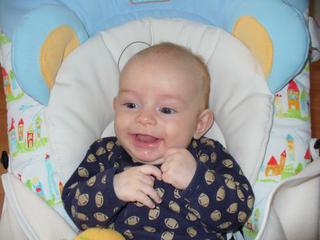 Takto krásne sa škerí moje zlato 🙂 a pred chvíľou si tak začudovane pozeral na ruky.... že čo mu to tam vyrastá (pršteky) 😀