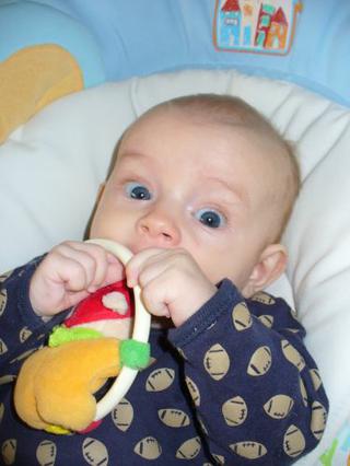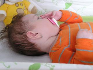babika teraz zaspinkala, bojoval zase so spankom ako kazdy vecer...uz si vie chytit cumlik do rucicky a dava si ho potom hocijako do pusy. 🙂