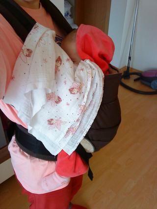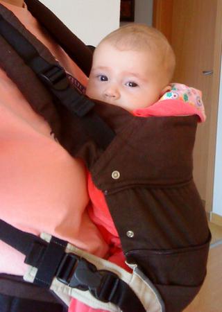 no nasa v tej manduce vydrzala celkom dlho, pekne si tam pospinkala. Najprv sme skusali doma a potom aj vonku za barakom. Inac, ked som mala popruhy klasika ako batoh, tak mi to nevyhovovalo, zle sa mi to zapinalo a mala mi pritom revala. Ale ked som to zapinala sposobom do popruhy prekrizene, tak to bolo super.