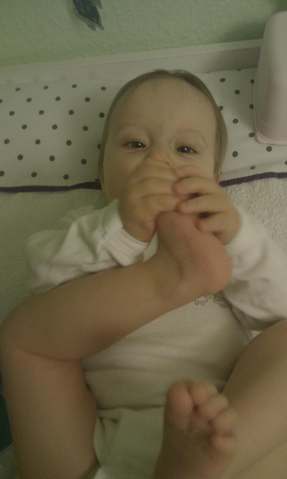 Moja bambuľka má dnes 11 mesiačikov, modrín viac ako zúbkov, chodí popri nábytku a niekedy sa odváži aj medzi ním, prespí celú noc a papá všetko čo nespapá ju. Milujem moje slniečko 😀