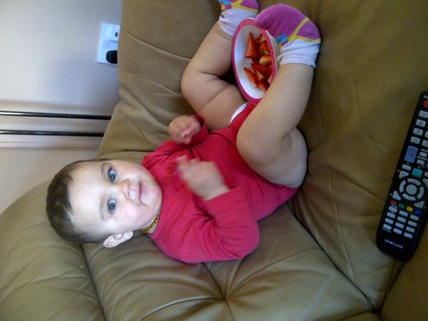 Ale Tilka si to tu uziva, aj ked dost na mne vysi, ale ona stale iba zere, to sa neda ani povadat ze papa, lebo ona je ako bezodna diera, kde vsekto mizne, ja neviem co z nej vyrastie. A stale by bola len zavesena dolu hlavou, ale ked bude taka tucka, tak ani barova tanecnica z nej nebude 😝 😝 😝
