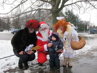 Po ceste domov sme stretli dalsieho Mikulasa s certom a anjelom, s nimi sme sa pofotili, len akosi maly sa hanbil.