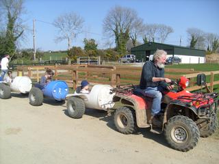 Inak my sme dnes mali krasnu nedelu 3 hodiny poobede od 3 do 6 kym zaverecnu dali na minifarme Secret Valley. Pred rokom o nej bola realcia na RTE a vdaka nej sa im zacalo podstatne viac darit. Tak aj viac aktivit ponukaju. TAk sa Patrick vozil 1x na konikovi a som rada, vobec sa nebal. No a tiez ich vozili v prievesoch na traktore takom malom a tak . Super. Nahanal kozliatka, kukal na pstrosa ale pav ho aj tak najviac fascinoval. A je krasne ze sa nicoho neboji, jastera mal na kolenach aj morciatko a hladkal si ich.