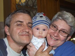Inaksie my ideme v pondelok na ockovanie a v stredu letime, tak dufam maly bude ok a vsetko dopadne fajn 😉 inak prikladam fotocky ze aky je uz velky a so svokrovcami 😉
