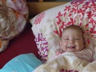 a ešte som zabudla Natálke sa veľmi páči prevaľovanie sa z chrbátika na brucho...hviezda v postieľke nič iné nerobí...je úžasná, už ani na sekundu nemôžem od nej 😕