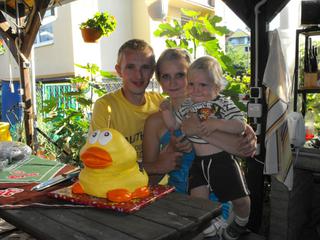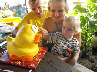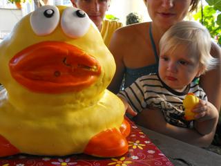 a konecne pridavam aj fotky s oslavy a nasim mega mackom... kacicku mal tortu a ta malinka vedla nej je predloha na porovnanie... je to jeho oblubena kacicka bez nej sa ani neokupe... ten cerveny stan dostal k narodeninkam aj hracky do piesku a hned sme useli samozrejme testovat kolko vydrzia 😉 a to vozenie vo furiku je najnovsi adriankov vymysel... dedo mu to raz ukazal a odvtedy ked ich vidi pyta sa do nich vozit... 😀 a tie fotky s macom komentar nepotrebuju si myslim 🙂