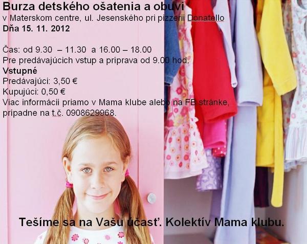V materskom centre v Seredi bude vo štvrtok 15. 11. burza noseného i nového oblečia pre detičky. Info na priloženej foto.