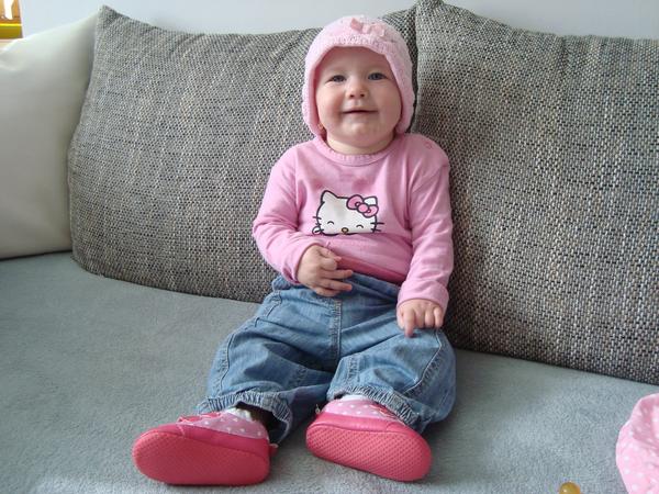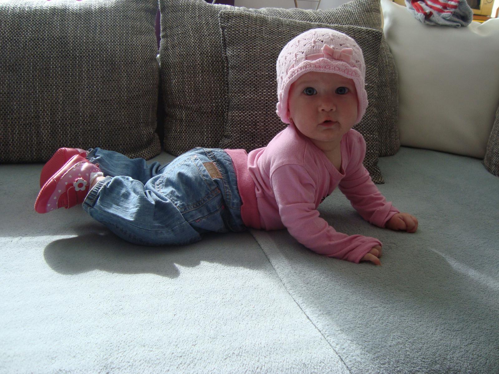 @nikiniki Dobré ránko.. aj moja už ťahá hodinku spánok, kafé dopité, už sa mi zdá, že sa aj začína ozývať, ale kým je kľudná a neplače, ani tam nejdem 😉 . Ináč som vás čítala také tri dni dozadu.. tak hodinka mi prešla ako nič .. moja malá doteraz spala na brušku, ale už sa začala tak krútiť v postieľke tak, že zaspí väčšinou na chrbte.. ale ona sa už sama otočí, ako chce, to je super 🙂 . No a papáme už tiež aj lepok, nakoľko sme na UM, tak som čítala, že najlepšie je zaradiť lepok medzi 4-6 mesiacom.. Ja dávam do ovocia Hipp sucháre, alebo aj klasické piškóty..A kaše vypije max. 150 ml večer.. je to individuálne, každé dieťatko je iné.. ja som mala strednú dcéru takého papkáča, ako je Ivkina malá, tá zjedla všetko, čo nezjedlo ju 😝 . Ona mi pila 200 ml mliečka od 4 mesiacov.. a v pol roku plná fľaša večer. Teraz som si nevedela na našu žížalku zvyknúť, že tak málo papá.. Typujem, že ešte nemá ani 7 kg, uvidíme... 30. mája ideme do poradne. No a ešte začala mať snahu posadiť sa sama .. normálne sa dá na štyri a už sa dáva doboku sedieť, ale podopiera sa rúčkami, lebo ona ešte sama sa neudrží sedieť.. zlaté sú tie naše drobce, ako sa hrabú do života 🙂 Pridávam fotečku - naša polročná slečna 🙂