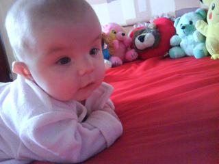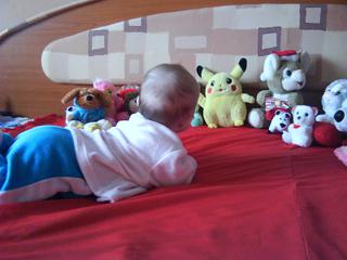 no tá moja malá bambuľa je lenivá sa pretočiť--každý deň s ňou cvičím a ona len čaká na mňa....ale ked ju nechám tak,že sa jej chvíľu nevenujem,tak je na boku v takom klbku a dočahuje si nožičky--inak tie objavila a stále sa ich snaží olízať,ale zatiaľ bezúspešne,ale raz možno....
