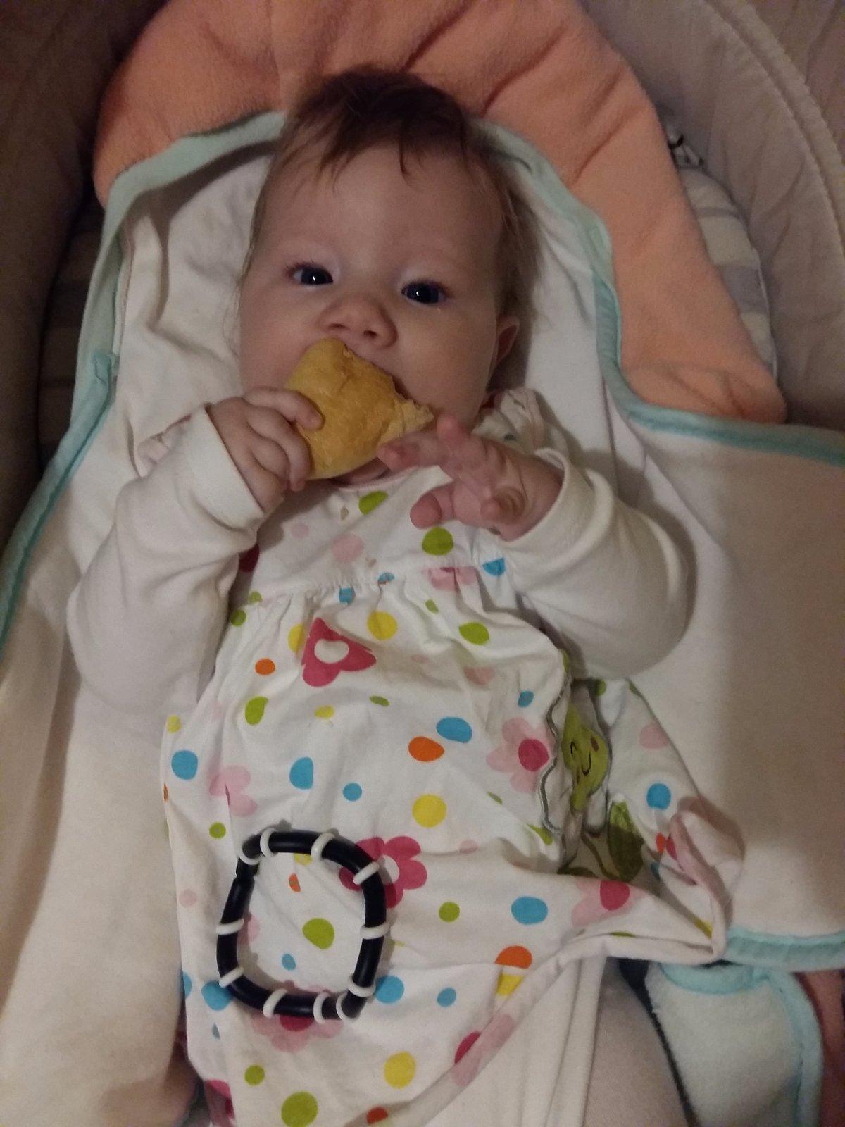 A este som zabudla napisat, ze v noci spala od osmej do pol piatej rano. Statocne potiahla. Toto by jej tiez mohlo ostat.