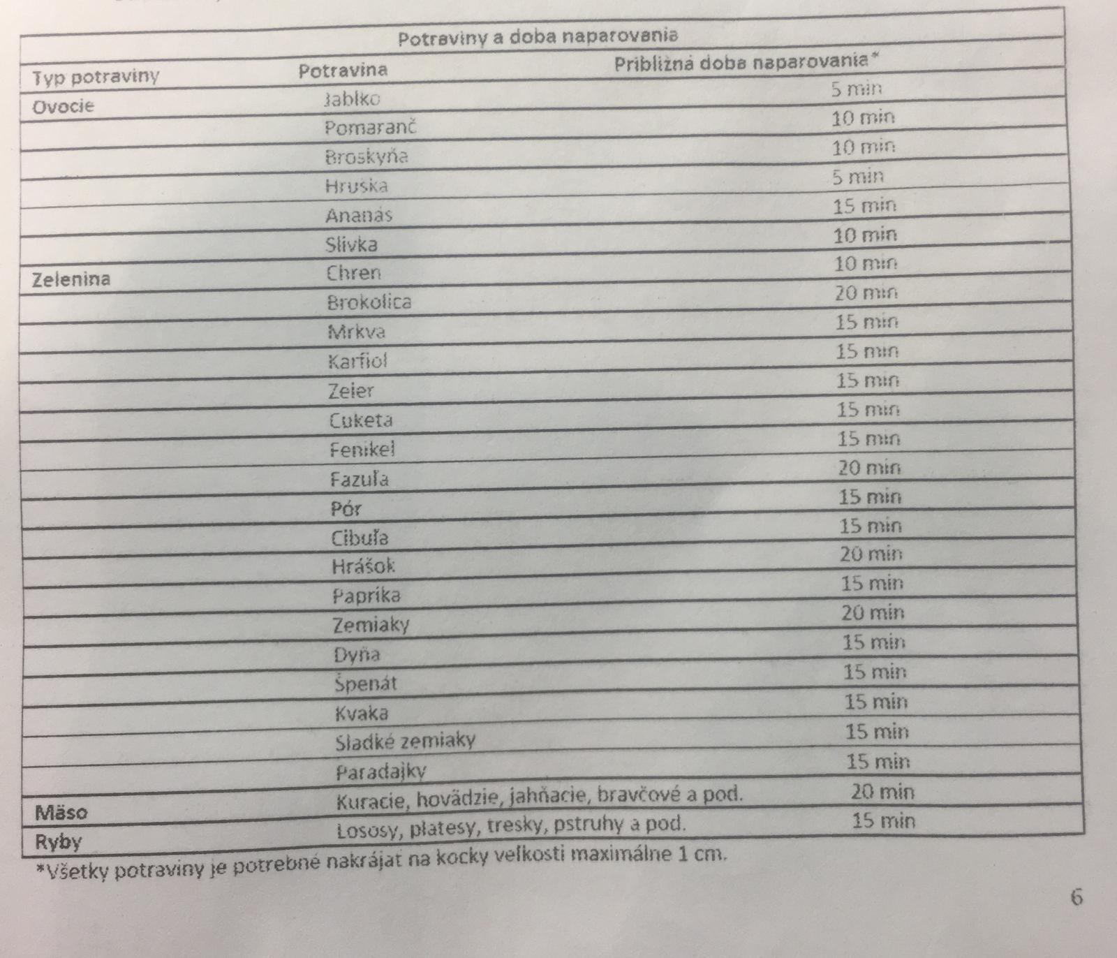 Ja som k tomu hrncu (kombinacia s mixerom) dostala tabulku s casmi naparovania - prikladam foto. Snad to bude citatelne