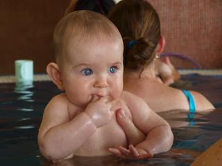 Naše malá plavkyně:o). Jinak Terezce se už moc v bazénu líbí!!!