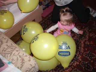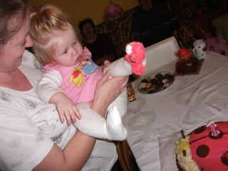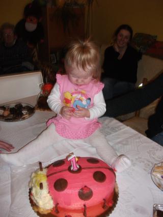 Tak a už aj my máme doma batoliatko 🙂 ako to rýchlo ubehlo, mám pocit akoby to bolo len včera, čo sa malá narodila, torta jej vobec nechutila, ale zato sa vybláznila s darčekmi a s balónmi. A namiesto toho, aby do torty strčila palec tak tam strčila nohu 🙂