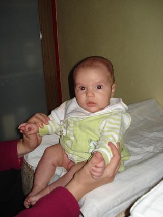 tak se prisli od jednej babinky, maly tam uz bol nervozny a placlivy a muz,, nie a nie prist pre nas.. tak som malemu musela dat aspon 90ml pretoze nas cakalo este cvicenie, tak sme prisli, maly uz vyskereny,,, asi vedel ze je doma, nie ze by bolo u babinky zle. ale doma je doma. po prichode domov sme prisli na to, ze sa nam zas vypol kotol takze doma okolo 21 stupnov. cvicili sme v bodicku, nekupali sme sa, len sme sa poutierali vlhcakmi a teda dali sme este 90ml, historicky dnes je to den so 180ml behom hodiny a ideme spat,, no najskor sa muzovi nezdalo, ze je maly nejaky smrdlavy a on nalozil take krasne zelene....a tak sme sa prebalili pri prebalovani na mna slahol prud mocu takze sranda velika, a ukoncili sme to obrovskou grckou na maminkine tricko s usmevom na tvari sme sa ulozili a spinkame... 🙂