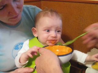 ahojte, moj zubaty tiger uz papa nozku!! 😀 a dnes sme ochutnali mrkvu.. a na konci nam skoro lyzicu zjedol 🙂 Tak si musim nieco nastudovat, ze co a ako s tymi prikrmami a zacat ''kuchtit''. Inak som otrasna kucharka, tak dufam, ze sa budem ucit postupne. Na zaciatku asi nie je co pokazit, uvidime co potom.. ;)