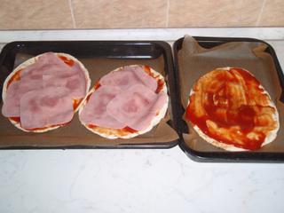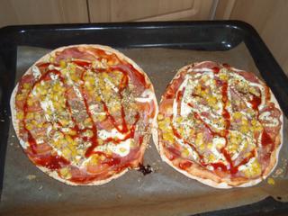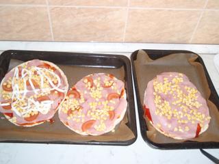 Je to jednoduché na arabský chlieb nahádzať: kečup,šunku,platkový syr,može byť aj črievko,kukuricu,rajčinu (zeleninu podľa chuti) a posypať Oreganom alebo Pizza korením ....šupnúť do trúby na 20-30 min cca 160-180 C.
