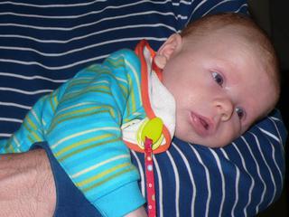 U dr. sme kazdy tyzden. Teraz nas trapi bakteria, ktora je velmi ojedinela. Ked sme boli u dr. min. tyzden, kvoli kolike, povedala som aj, ze ked Andrejko ten den grckal, vygrckal soplik - zeleny. Tak dr. spravil vyter z hrdla a zobral aj vzorku z plienky - akurat bola stolica 1x hlienova. Nasla sa v jeho telicku bakteria, ktoru byva u dlhodobo chorych chirurgickych pacientoch - hlavne v ranach. No nechapala som kde sa vzala, podla dr. ju ma Andrejko z porodnice. Ale kedze Andrejko pekne priberal, tak sa dr. rozhodol ho len sledovat, aj stolica bola ok a dal nam len probiotikum - bio gaiu. Vcera bola stolica uz zelena, tak som volala dr. ze co? Dosli, sme spravili znova kontrolny vyter, vysledky budu v pondelok. Vraj by tie probiotika mali pomoct. Uvidime. Spomenula som si, ze ked sme isli z porodnice, tak mal Andrejko na ritke - anal. otvore ranku - ragadu, ktoru este stale nema zahojenu. Uz to vizeralo, ze sa zacely, ale nie. Tak sa spytam v pondelok dr., ci tam nemoze byt ta bakteria. Som z toho smutna, ale nastastie Andrejko nema teploty a pekne pribera. Min. tyzden vazil 5200g., v stredu 5450g. Takze 200-250g za tyzden.