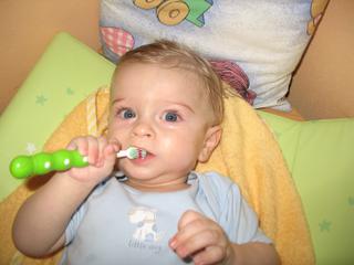 @chorale1 no fakt fešak s takymi modrymi očkami 🙂 a zlaty je s tou kefkou,to sa mi pači 😉 a dovoli, aby si mu aj Ty očistila zubky,alebo len on si to tam hryzka??? lebo my s tym teraz dost bojujeme 😠 ...a ak možem odporučit,tak mu kup kefku Curakid,je najlepšia pre detičky 😉