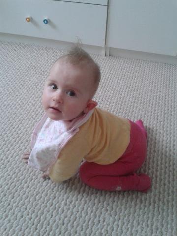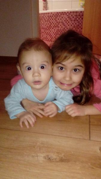 U nas podobne..lozi uz sice niejaky mesiac ale teraz ide do tuheho...musim robit zmeny,lebo mi otrhava kvety z kvetinaca,z policiek ktore su nizsie vytahuje košíky a z nich veci,uz utrpeli aj dcérkine maľby ktore som mala na chladničke. .dostane sa vsade a vsetko treba ochutnat..najlepsie je prist k mame ked je v kuchyni a tahat ju za papuce ....pridavam foto: vravim dcerke ze nerob grimasy nech si vas konecne spolu sfotim,no ked uz krpec spolupracuje,velkacka nebude ani za svet...