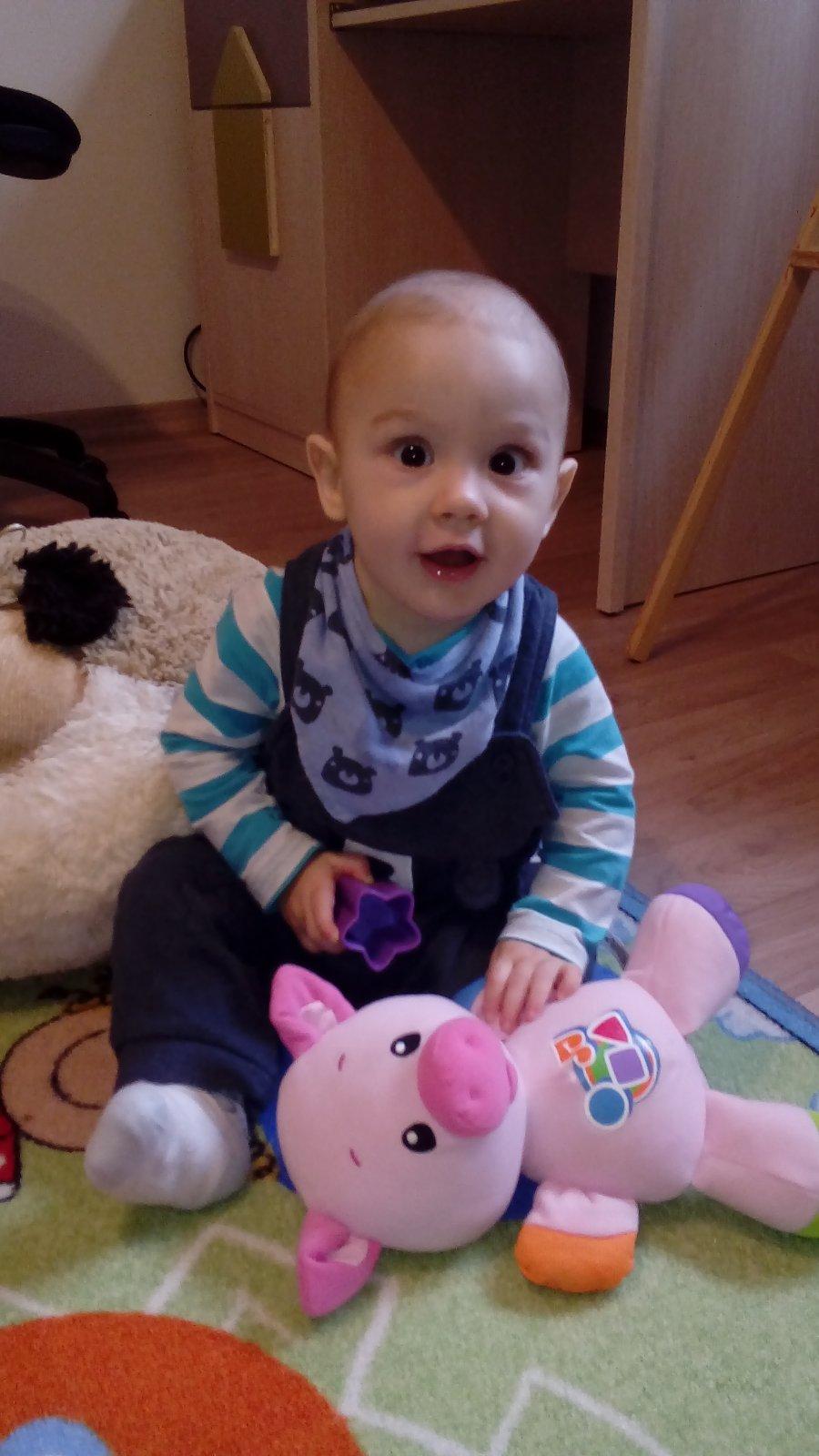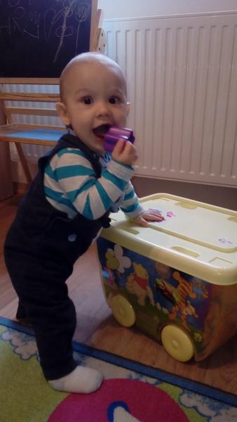 Ahojte zienky...Natanko ma dnes 9 mesiacov,ani sa mi verit nechce ze uz mame take velke detuchy...zajtra mame poradnu tak sa dozviem oficialne miery drobca,no doma ked som ho vazila tak mal 7900g ...stvornozkuje rychlostou blesku a konecne som sa dockala sedenia...pred 2 tyzdnami sa zacal stavat na nozky a je to u neho teraz priorita. .no su aj pady,pretoze maly pánko uz popri tom aj tancovat chce 😀 ...a co sa tyka dojcenia a uspavania tak ano aj on pri tom potrebuje mamku tahat za vlasy,ucho,saty alebo ma skriabe po dekolte ...