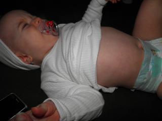 takze moje predpoklady sa potvrdili a dnes u nas vyvrcholila 6ta choroba.v noci uz teploty nastastie neboli,ale malinka este nie je celkom v poriadku,stale to neni ona.a je sem tam mrzuta,no je to ovela lepsie ako par dni dozadu,takze uz len tie zubky nech su von a snad budeme mat opat doma usmievave slniecko 🙂 .pridavam aj foto,malinkej sa nepacilo, ze ju fotim,ale tak hadam tam uvidite vyrazky -vpravo nad plienkou.