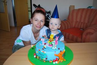 ahojte dievčatá tak už aj my máme oslavu 1.roka za sebou síce s menším meškaním ale predsa malý bol super len stále chcel tú tortu ale zvládli sme to 🙂 pripájam aj foto