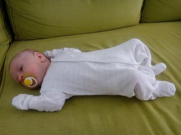 A máme za sebou prvú poradňu u lekarky, takže napriek problémom s kojenim, keď sa malý jeduje často jak čert a pije podľa mňa malo, lebo niekedy sa po troch minútach pitia naserie a len placemeeeee...tak pribral 1220g a narástol na 58cm, teda má plus 4cm
