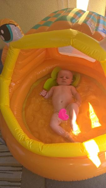 My sa uz kupkame na balkone ☺😍 mamka ma trosku veget len prinom sedim a davam pozor maly si to uziva ako sa len da ..milujem tu zabku najviac 🛀