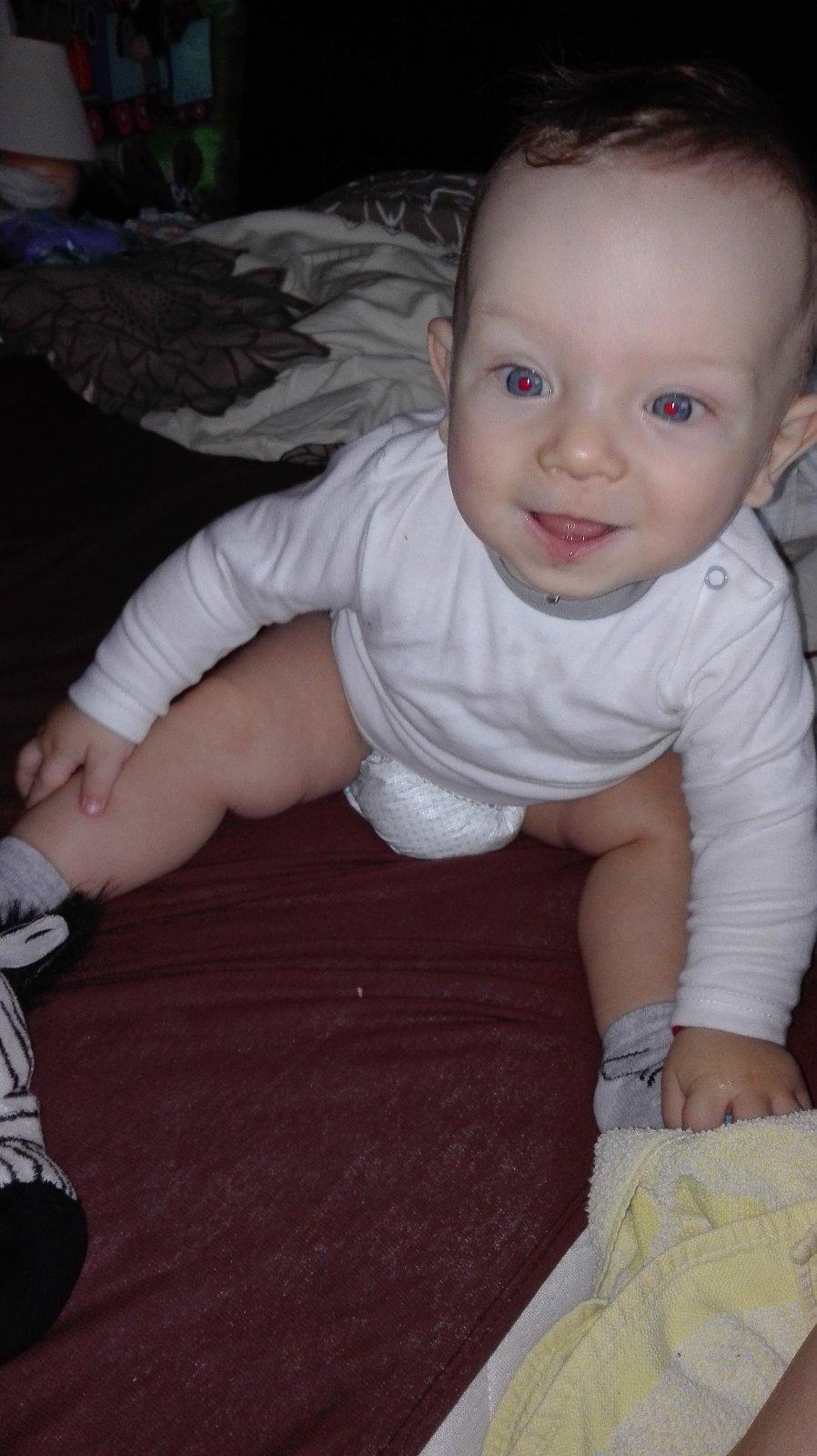 @stanka2612 on lezi na chrbte potom sa otacat zacne -na jeden bok na druhy.... a nozicky si pritiahne k telu a ked neskonci na kolenach tak vacsinou jedna noha pod sebou a ako krtko sadnut sa mu podari sem tam mozno 3-4krat to iba od piatku....