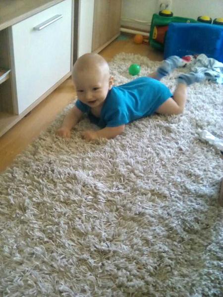 @lenadka my sme plazenie preskocili ☹ zial sme len cuvali a ked ho idem dat na zem lahnut vzdy napne nohy a sa postavy ☺ sediet sedi krasne vyrovnany ☺ asi skusim na chut mu uz dat ...aj my uz papame odkedy bol chory len by jedol tuhu stravu ...