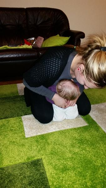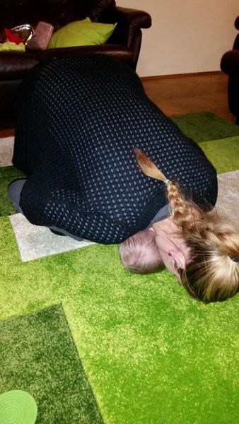 @pahu @denca2d ja mam este jeden...klaknete si. Dieta date chrbtom k vam tiez klaci na kolienkach. Vasimi nohami mu fixujete jeho nozky. Ruky mu date dole vedla seba a spolu idete na zem az kym hlavami nie ste na zemi a ked ste rychlo ho chytite za ramena aby rucky vybralo a tym zaujme polohu. Odfotim...