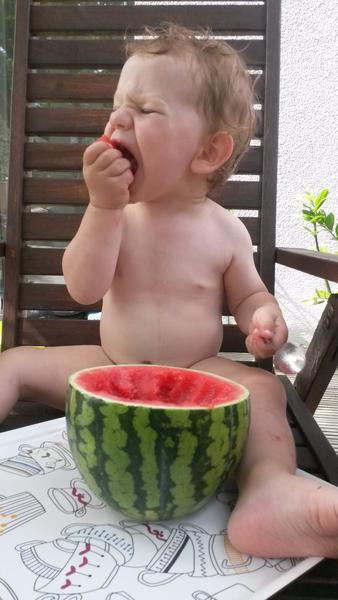 Snaží a veľmi chce papať sám s polievockami je to ešte zaujímavé ale ide nám to.... Naučili sme sa povedať HOVNo za čo môže tatko...