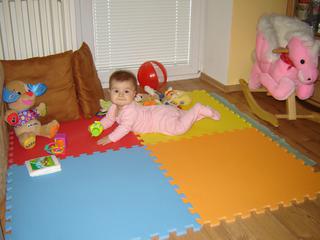 ahojte nespíte? 😉 mne malá zalomila pri kojení úplne odpadla a teraz ležká na boku a spinká, vypadá taká veliká keď neležká na chrbátiku .... dnes som jej musela zrušiť gaučové královstvo a prestahovať ju na zem, velmi nebezpečne sa začala premiestnovať a nechcela som riskovať že mi capne na zem 🙂 takže prikladám foto jej prízemného královstva 😀