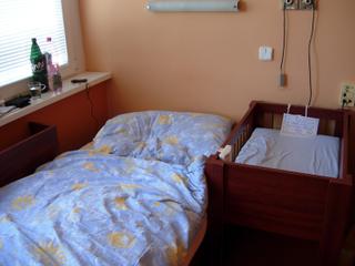 Hneď ako sme priši, dostala som od jednej sestričky zoznam čo všetko treba, potom prišla druhá, tá ma aj s MM previedla prípravnou miestnosťou, pôrodnou sálou, všetko pekne "po lopate" vysvetlila. Keďže idem sekciou, tak toho nebolo veľa. Hneď MM povedala že ak chce, môže byť pri prvých vyšetreniach bábätka, lebo ja budem ešte spať. Potom budem 2 dni na pooperačnom, kam mi bude laktačná sestrička nosiť malého, no a potom šup ho na šestonedelie. Tu sme stretli ďalšie sestričky, zasmiali sme sa nad jedálnym lístkom, je tam výber zo 4 jedál toto nosia na izbu, alebo ak sa cíti mamička moc sama môže sa najesť v spoločnej jedálni. Štandardné izby boli pekné veľké, dokonca som mala pocit, že za dverami bola skriňa na veci. Na izbe sú 3 postele, ale sestrička hovorila, že sa snažia dávať mamičky tak, aby boli na izbe max 2. Klasický štandard super, izba síce malinka ale vôbec nevyzerá ako nemocničná, a MM tam môže byť celý deň. No a videli sme aj nadštandardný apartmán, kde je manželská postel, a MM tam môže byť celú dobu.