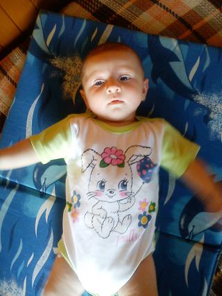 inak sme už opäť v DE, náš maličký zvládol cestu opäť bravúrne, vlastne sme cestovali v noci, takže ani nezistil, že sa niečo deje, zaspal o 20:00 ako vždy a zobudil sa nad ránom, tak ako vždy, cez deň spínkava pomenej, ale naobed si pospinká vždy tie dve hodinky v kuse, čiže je potom poobede kľudnučky, začal už veľmi vnímať, čiže sa usmieva, škerí, strašne sa naťahuje za hračkami, ale ešte nevie uchopiť a najviac sa mu páči, keď robim zvuky mačičky, alebo koníka, alebo keď spievam, to sa nevie vytešíť, pretáča sa len do strán, ešte sa mu nepodarilo pretočiť, ale pokúša sa s chrbátika na bruško. Dudeľ som ešte stále nevzdala, a každy deň tlačím do pusy, lebo je to s rúčkami stále horšie a horšie, stale by ich mal najradšej v ústach a začína to byť uspech, už mi na rúkach zaspinká aj s dudľom, keď mu ho troška podržím, tak ho začne potom ťahať, no uvidíme ako ďalej, zatiaľ neviem, koľko važí a meria, lebo nás kontrola čaká až o týždeň, ale veci už nosíme číslo 68, a pred mesiacom mal 6100 g a 63 cm, tak to už teraz bude určite viac. inak je to dobre bábo, tešíme sa z toho že ho máme .🙂