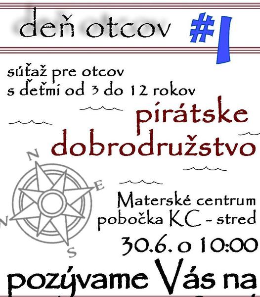 30.6.2012 od 10:00 se uskutoční súťaž pre otcov s deťmi od 3 do 12 rokov Pirátske dobrodružstvá (rodinná hra, každý tím, zložený z otca a z aspoň jedného dieťaťa, bude musieť prekonať niekoľko nástrah na plavbe za pokladom) každý tím ziská drobnu odmenu.