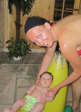 V tomto obdobi to ma vyhodu ze uvidis ako sa malemu bude/nebude pacit. Ked bolo vlani pekne a teplo tak sme odplavali hodinu a potom sme sli este von na slniecko, na travu, a tak .....a to sa mu ako chodcovi amaterovi strasne pacilo. Potom zase sup do vody a tak.