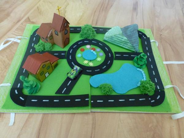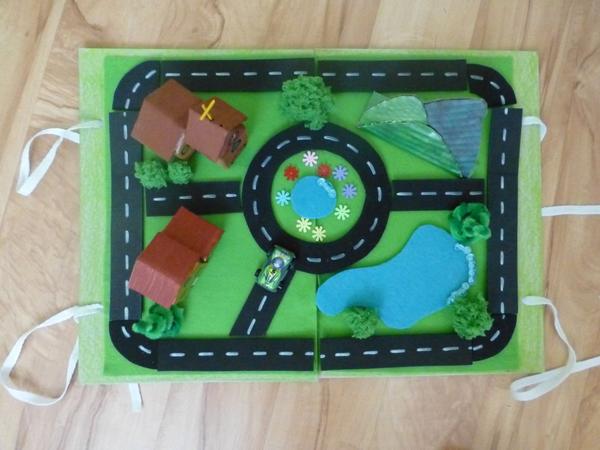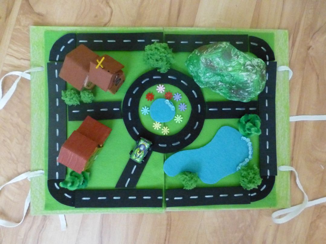@tomaskovamaminka ano, su to cca 2xa4. cesticky budu navolno, len podlepene suchym zipsom, aby sa nesklzli - cize by sa eventuelne dali poskladat aj inak, snad. neskusala som. stromy gulate su z vlny a spicate su zlozene z drotikov na cistenie fajok a filcu. neskor pridam aj jednotlivo pofotene stromy, kopce a budovy.