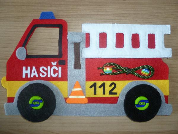 2. Čo potrebujú záchranári- ušijem sanitku, policajné auto a hasičské auto z filcu, ale tak, že hore nezošijem a bude to ako vrecko, do toho sa budú priraďovať kartičky, na ktorých budú obrázky s tým, čo potrebujú k svojej práci...napr...hasiči- hadicu, prilbu, ... atď. (ilustračné foto z netu)