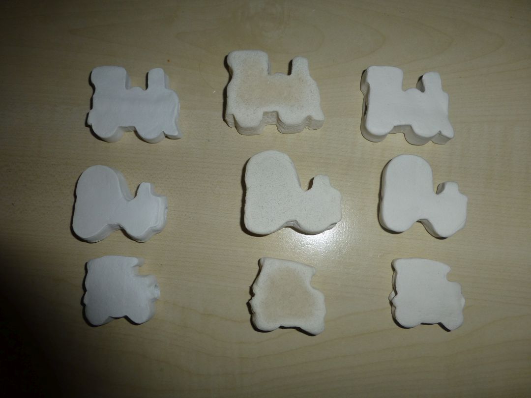 1. hmota sa najviac "scvrkla" pri schnuti a trochu aj popraskala. tym, ze sa scvrkla, tak je otvor viditelne vyduty po dlzke jednotlivych dopr.prostriedkov