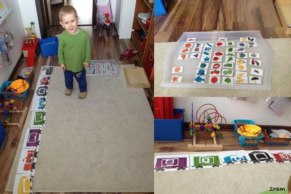 3. Farebný vláčik s kartičkami - dieťa nakladá na vgóniky kartičky podľa farby. Dá sa použiť na farebné triedenie čohokoľvek. Syn má 3,5 roka a toto si vyťahuje sám pravidelne, odkedy vláčik máme. Najskôr som sa hrala s ním a teraz je úplne samostatný.