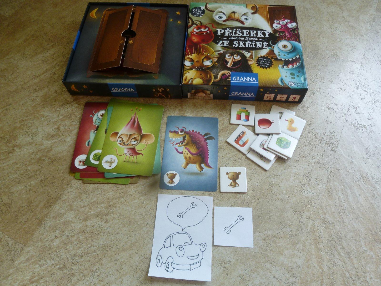 2.hra na sposob "priserky zo skrine" http://www.foxgameland.eu/priserky-ze-skrine.html v jednoduchej verzii ide vlastne o pexeso da sa povedat. Bolo by to samozrejme o autickach, auticko je pokazene, tak hlada kluc, dieta bude hladat na mensich kartickach (otocenych obrazkom dole) kluc, alebo chce ist do lesa, natankovat,umyt,... Ked najde malu karticku,da karticku s autickom da do garaze a malu karticku naspet otoci, a pomaha dalsiemu auticku. Situacii asi 7 (7 malych karticiek ) a Velkych karticiek 14( ziadosti auticiek sa budeu opakovat, aby si ich dieta skor zapametalo )