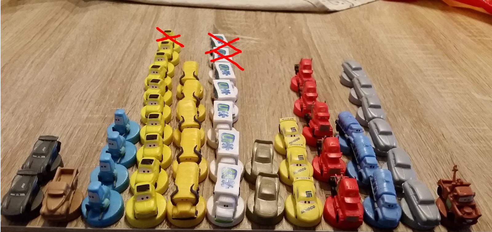 @lienka2191 potrebujem sanitku a mám na výmenu Smokey (hnedý pick up), Mack (červené veľké), maskovaný McQueen (malé hnedé), Cruz Ramirez (žlté pretekárske)