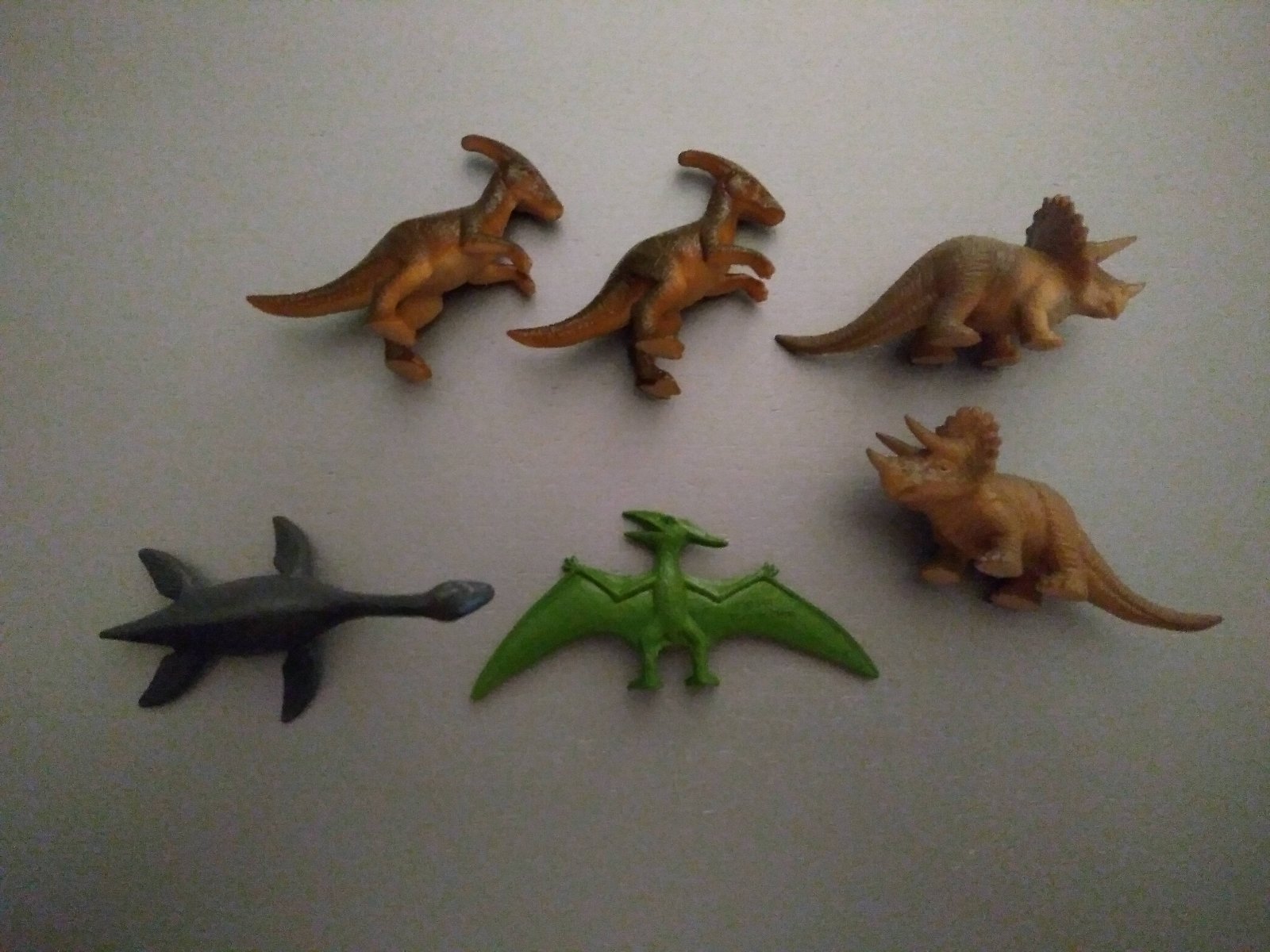 Mame tychto velociraptor 1x pteranodon 2x saurosuchus 1x ankylosaurus 1x corythosaurus 2x