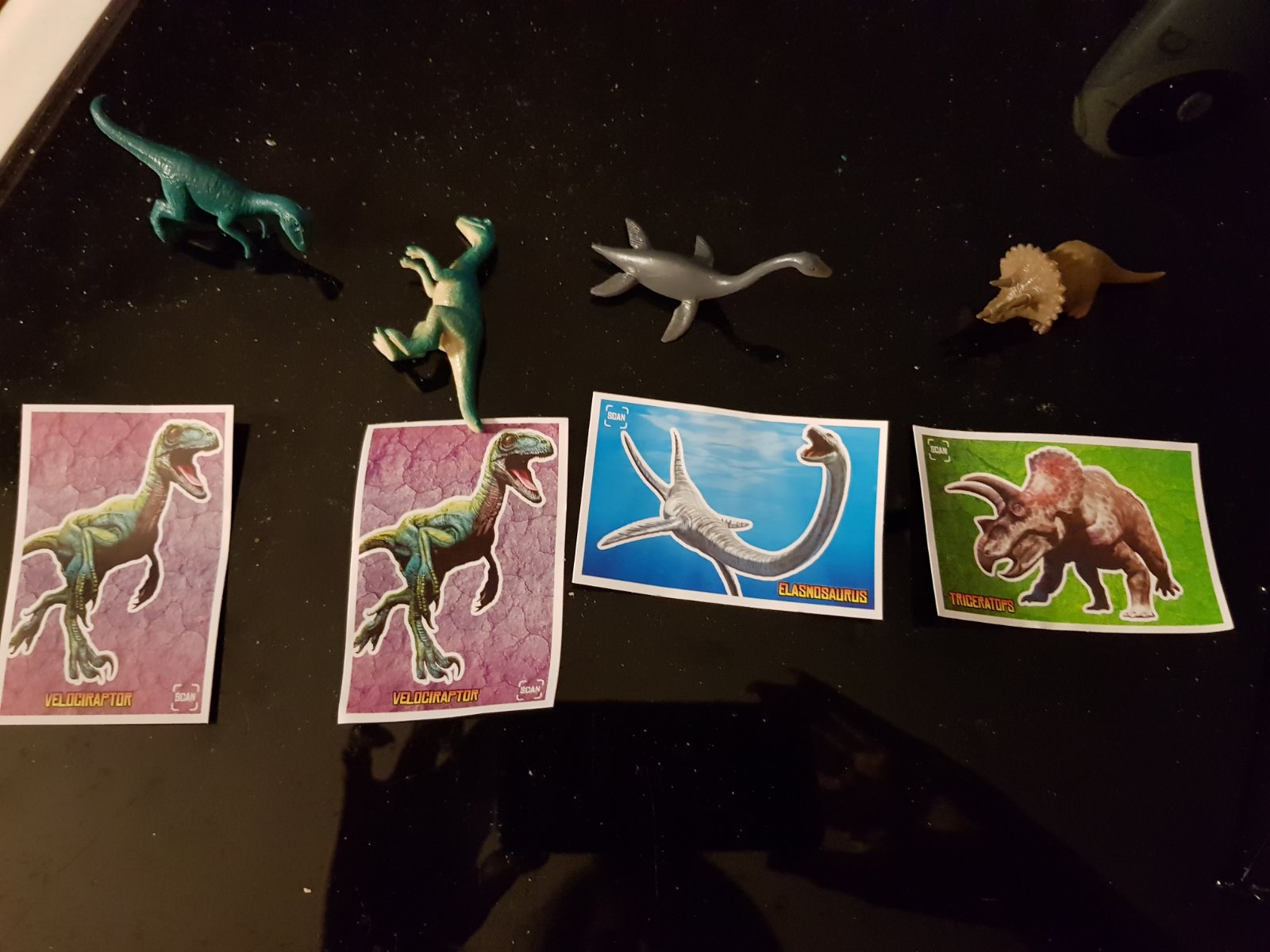 Mame na vymenu Stegosaura a Elasmosaura aj s nalepkami. A chybaju nam Parasaurolophus.dilophosaurus.saurosuchus.palaeoscincus.veloceraptor.t-rex.brachiosaurus.brontosaurus a pteranodon.