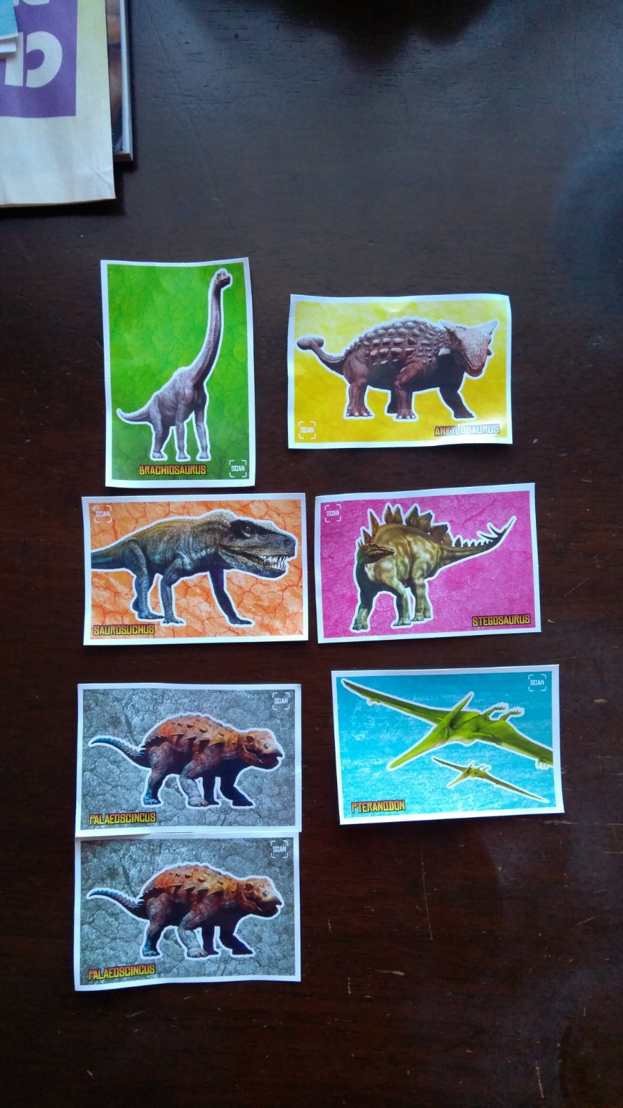 Zháňame Pachycephalosaura, na výmenu máme k dispozícii: 2x Paleoscinca, 2x Ankylosaura, 2x Corythosaura, 2x Saurosucha, Spinosaura, Parasaurolopha, T-rexe. Tých čo máme 2x kľudne vymením aj za Elasmosaura. Všetko samozrejme s nálepkami, nám ale stačí aj bez nálepky.