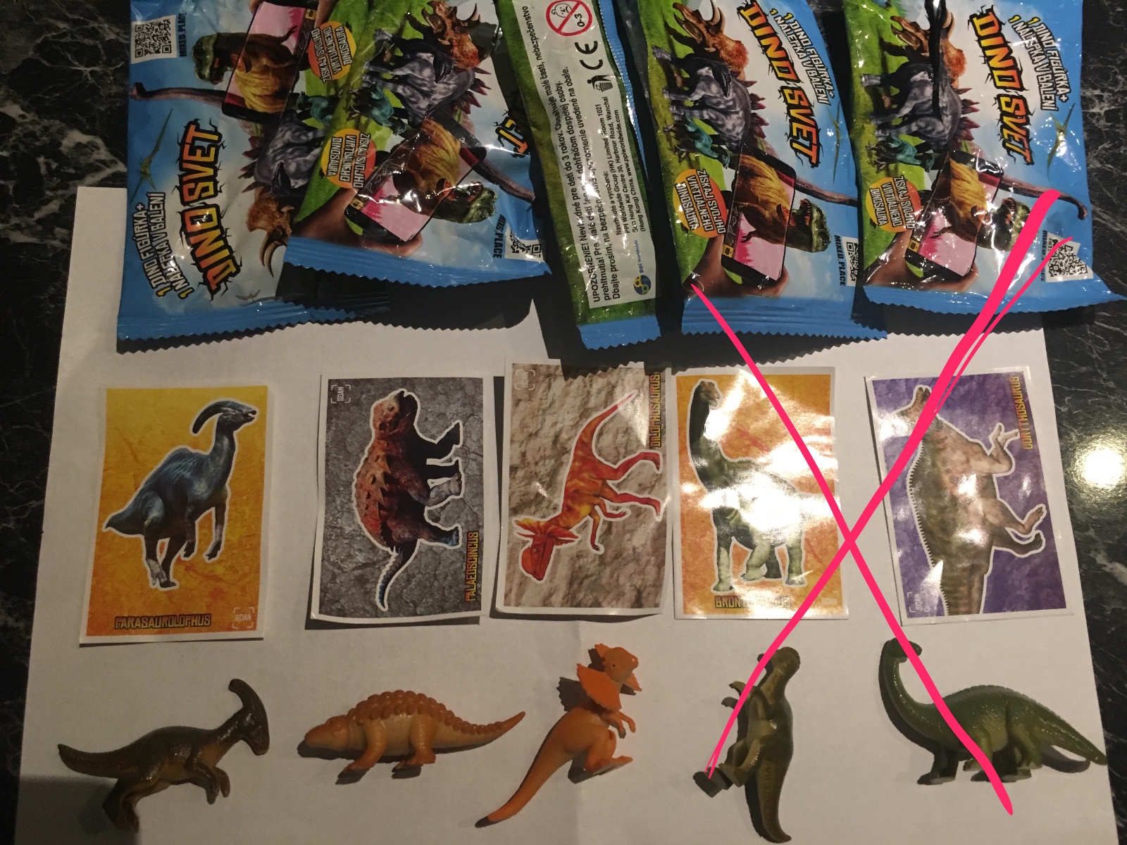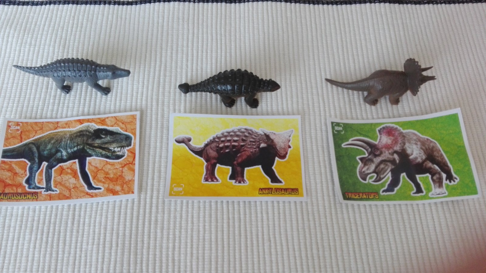 Ahojte, do zbierky nám chýbajú: velociraptor, brachiosaurus a parasaurolophus. Na výmenu máme: pteranodona, spinosaura, triceratopsa, stegosaura, ankylosaura, saurosochusa a pachycelaphosaura. Iba v Ba.