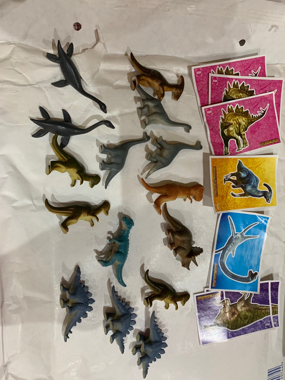 Ahojte zhanam elasmosaurus, brachosaurus mozu byt aj bez nalepky, ponukam na vymenu s nalepkou tyranosaurus rex, triceratops, brontosaurus, pachycephalosaurus, bez nalepky tyranosarus rex, pachycephalosaurs, stegosaurus, ankylosaurs, corythosaurs, velociraptor