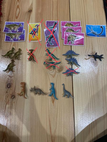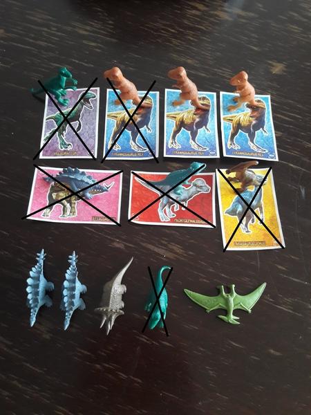 Predám zvyšné dinosaury 1€/kus, plus pošta. Najlepšie všetky spolu. JEDNA nálepka T-Rex navyše grátis. Jedna figúrka bez nálepky. Viď. foto