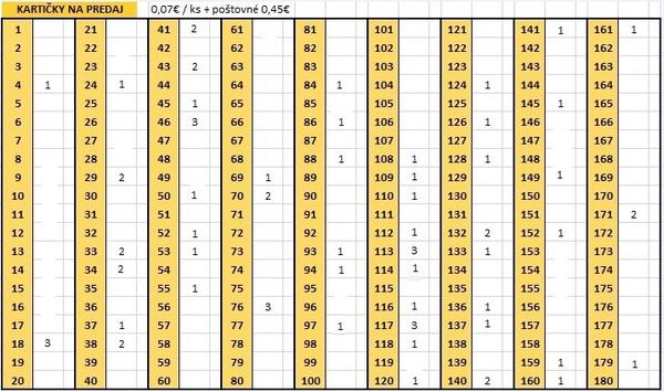 Chýbajú nám posledné 4 kartičky 44, 51, 125 a 180. Máme aj na výmenu, ale už len obyčajné. Pošlem aj viac